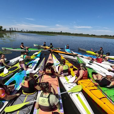 Nuestra Escuela de Kayak para adolescentes y adultos es un espacio pensado para iniciarse, perfeccionarse o reconectarse con la experiencia de remar. A través de una propuesta integral que combina técnica, disfrute y vínculo con la naturaleza, acompañamos a cada participante en su propio proceso de aprendizaje.La etapa adolescente y adulta trae consigo nuevas búsquedas, motivaciones y desafíos. Ya sea como una práctica deportiva, una vía de expresión personal o un encuentro con el río y sus tiempos, el kayak ofrece una oportunidad única para el desarrollo físico, mental y emocional.El enfoque de nuestras clases se adapta a los distintos niveles y objetivos. Trabajamos contenidos técnicos (remadas, maniobras, seguridad), entrenamiento físico y dinámicas grupales, en un marco de respeto, escucha y cuidado mutuo. El río Paraná, con su diversidad de paisajes y condiciones, nos ofrece un escenario vivo que invita a superarse, relajarse y estar presentes.Remar es también una forma de pausa, de observación, de conexión. Cada salida al río es una experiencia diferente, que fortalece el cuerpo, despeja la mente y alimenta el espíritu.Buscamos que cada palista encuentre su ritmo, su forma y su motivo para estar en el agua. Promovemos el trabajo en equipo, la autonomía, el compromiso y el disfrute compartido, con la convicción de que remar es mucho más que una actividad: es un camino.